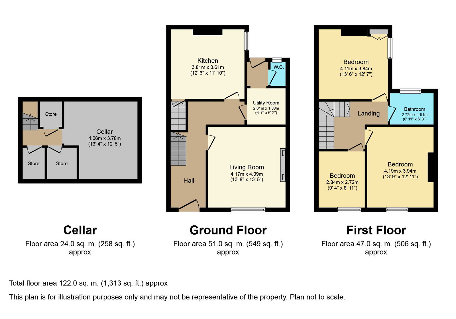 Cellar - 13' 4" x 12' 6" max (4.06m x 3.81m)