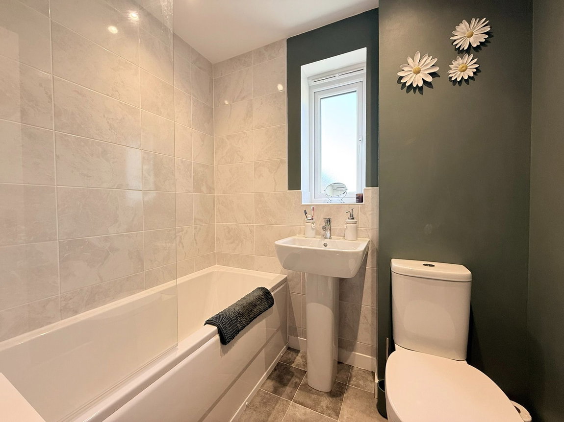 Upstairs, the landing connects to two well-proportioned double bedrooms, offering comfortable and private spaces. The family bathroom comprises a bath with a shower over, basin a toilet. The landing also benefits from a useful storage cupboard and provides access to the loft.