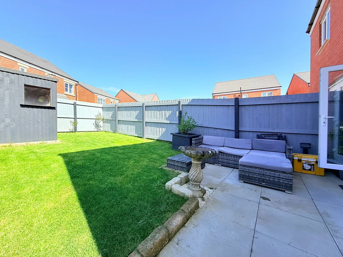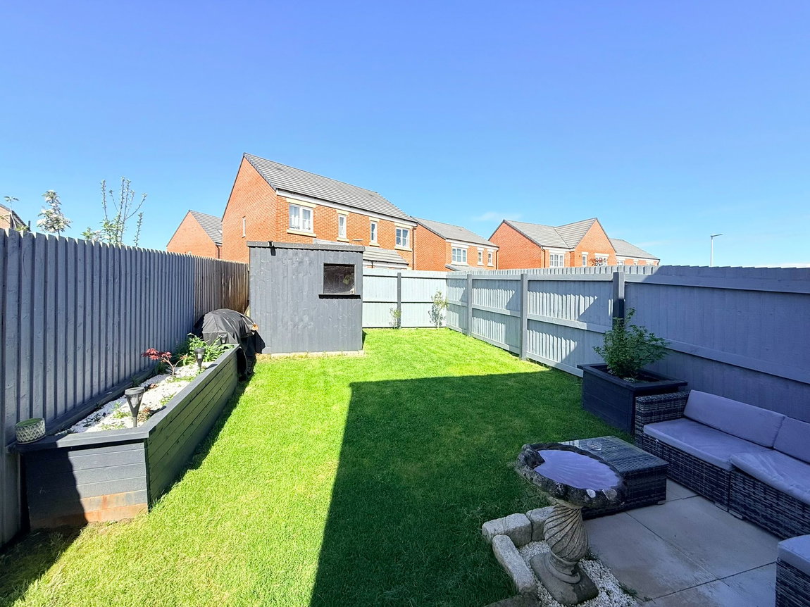 Externally, the delightful rear garden is designed for low maintenance, featuring a patio area perfect for outdoor dining, a neatly kept lawn, a shed for storage, and a raised border, creating an inviting outdoor retreat.