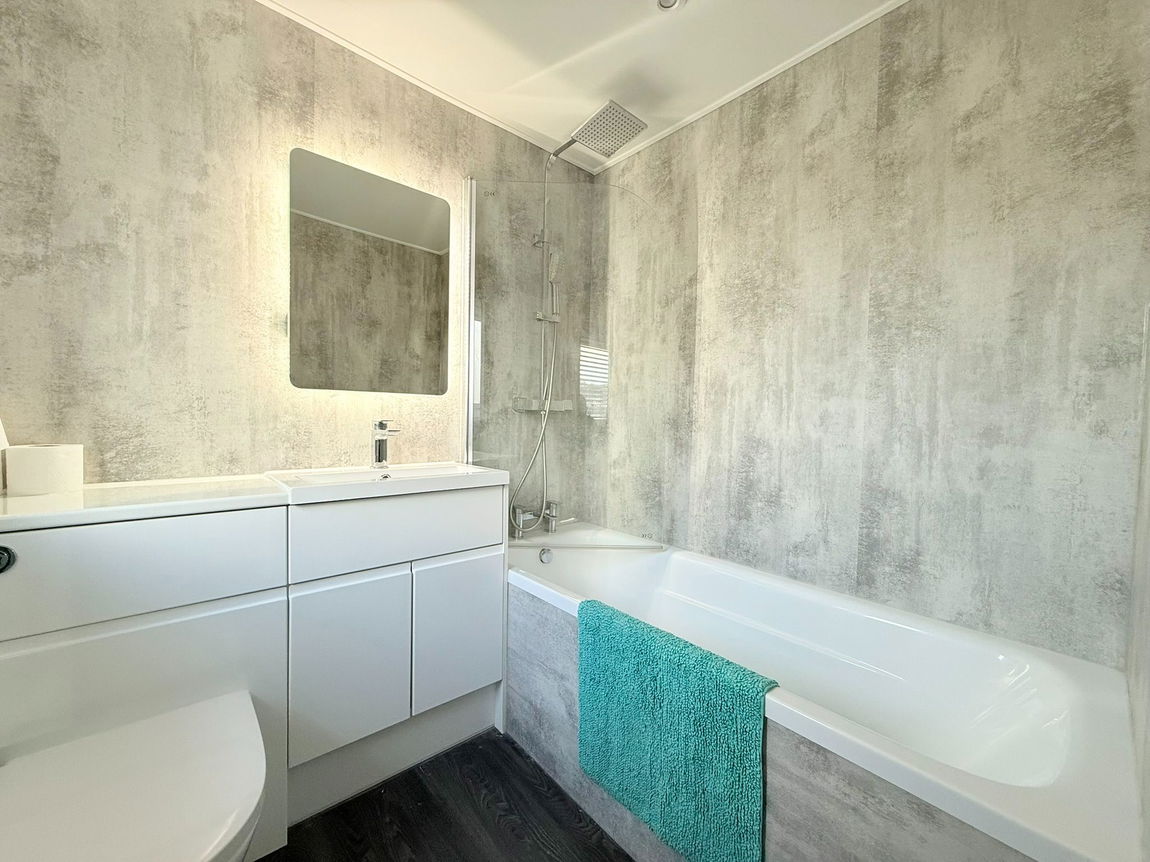 Upstairs off the landing are two double bedrooms, both with built in storage cupboards and completing the first floor is a stunning recently installed bathroom, featuring a bath with shower over, panelled walls and ceiling and a vanity unit housing the toilet and basin.