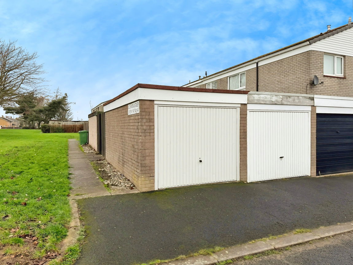 A single garage, with an up and over door, is located separately from the property, approximately 20m away in a block of garages, providing extra storage or secure parking.