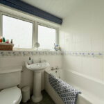 Upstairs, the landing leads to three well-appointed bedrooms – two doubles perfect for parents and older children, and a versatile single – alongside the family bathroom. The main double bedroom benefits from built-in fitted wardrobes, offering plenty of storage. The bathroom comprises a bath with a shower over, a toilet, a basin, and a heated towel radiator.