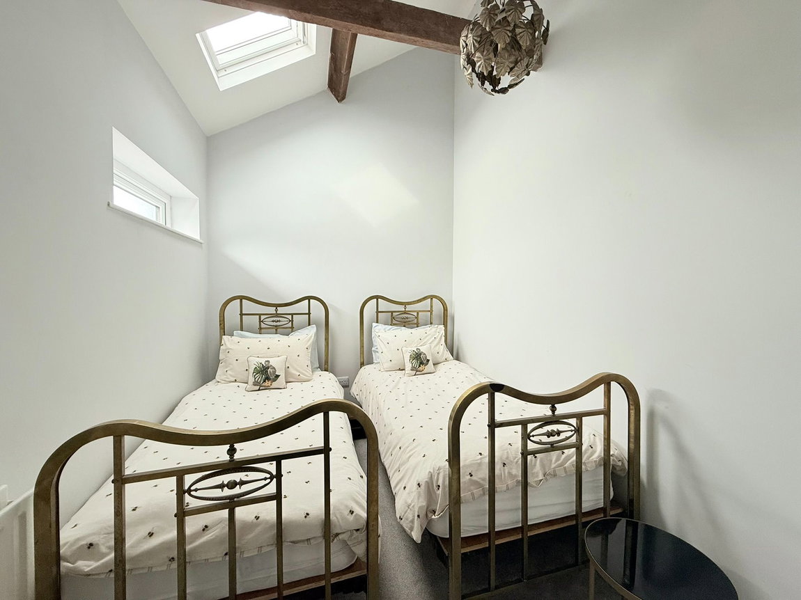 The cottage offers two comfortable double bedrooms, providing restful spaces. The stunning four-piece family bathroom presents a luxurious experience with a walk-in shower, a separate bath, a wall-mounted basin and a toilet.