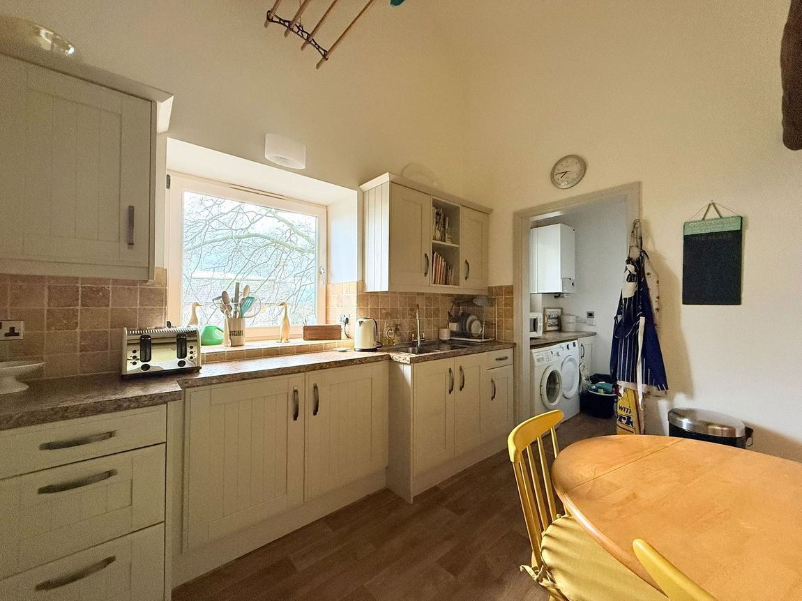 Yew Tree Cottage Barn offers reverse level 'upside down' living in the peaceful village of Beaumont to the north west of Carlisle. Converted in 1989 this four bedroom detached home with detached garage sits in a lovely mature garden. The living room has a vaulted ceiling with a dual sided multi fuel stove set into an exposed brick fireplace, dividing the lounge and dining area, with lovely views from the first floor.